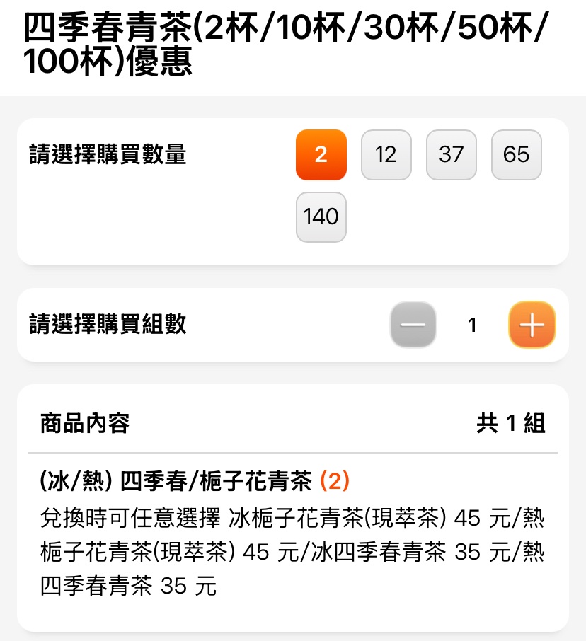 → mafs: 目前隨時取尚可購買的的四季春青茶(無期限)已標示領取可兌 04/07 19:08