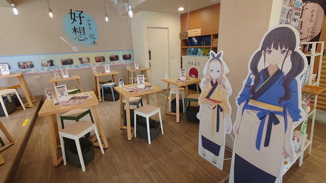 店內的擺設等, 大概就等身大立牌 還有一些周邊跟圖案