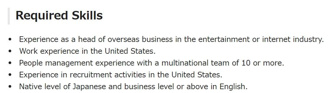 https://hrmos.co/pages/cover-corp/jobs?category=1974440558839943168 目前共開了三個職位 個人認為比較有趣的是分部總裁的職責 The LA subsidiary's operations include advertising sales, licensing, merchandisi ng (MD), public rela tions (PR), and studio management. 洛杉磯分公司的業務包括: 廣告銷售、商品許可、商品銷售(MD)、公共關係(PR)和工作室管理 The Branch President's responsibilities encompass recruitment, business developm ent, and local team management. 分公司總經理的職責: 包含招聘、業務發展以及當地團隊管理 Licensing: Exploration of licensing and wholesaling partners in the US with loca l partners (consider ation of employing staff). 可做的項目: 可與當地合作伙伴一起發掘美國的合作許可和批發合作商伙伴(可考慮僱用員工) PR: Hiring a PR agency while assigning US local partners (consideration of emplo ying staff). 公關: 在選定美國當地合作伙伴時可僱用公關經理協助 (可考慮僱用員工) Merchandising (MD): Considering joint ventures with licensed companies and starting local MD operati ons, with plans to manage e-commerce sites locally in the mid to long term. 營銷(MD): 考慮與具合法執照的公司合資,並開始當地MD業務,並在中長期內管理當地電子商務網站 Studio Management: Supporting recording sessions when talents use the studio. 錄音室管理: 當成員使用錄音室時協助其使用錄音會議 (目前看來至少這分部會有錄音室了) 基本需求: 具商業英文及日文母語等級 曾管理過10人以上團隊 曾擔任娛樂和網路業 有招聘經驗 首選技能: 在美國工作過 然後曾參與海外分公司建立 年薪面議,20萬鎂起跳 看起來雖然不是要蓋棚的程度 但也是非常有規模的在推行 只是我沒想到居然宣布了才徵人 我還以為是人事都定了才公開 然後年薪20萬鎂對這職位好像一般般? 我沒什麼概念 看誰能回答 主要還是以商業銷售為主 似乎也會積極尋找涉外合作 所以IP的實體合作推廣應該會是這分部的重點 https://i.imgur.com/sTlda5t.jpg