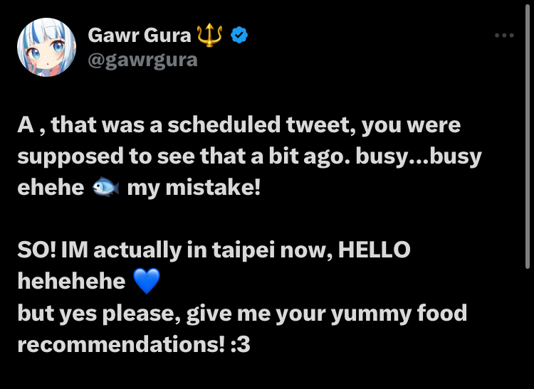 推 tsubasawolfy: 發新推了 說這推是舊的 她人實際上已經在台北了 03/19 11:29