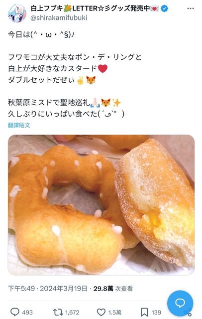 有蓬鬆感的Pon De Ring和白上最喜歡的卡士達