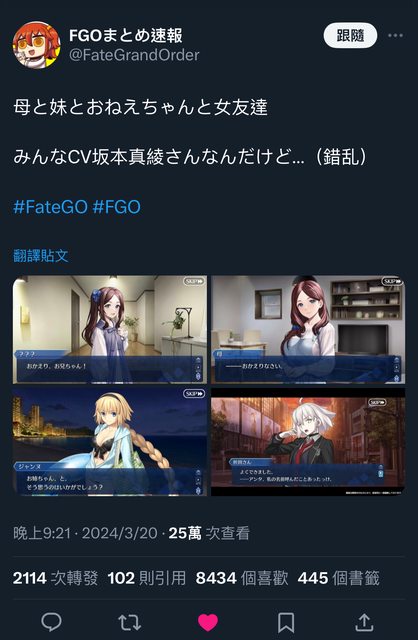 標題[閒聊] FGO 母姊妹女友都是坂本真綾