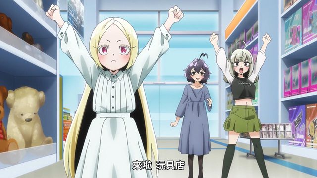 一家三口逛玩具店,因為時間軸有改,動畫組還有做修正 漫畫是在夏天可麗絲穿短袖,動畫移到夏天前