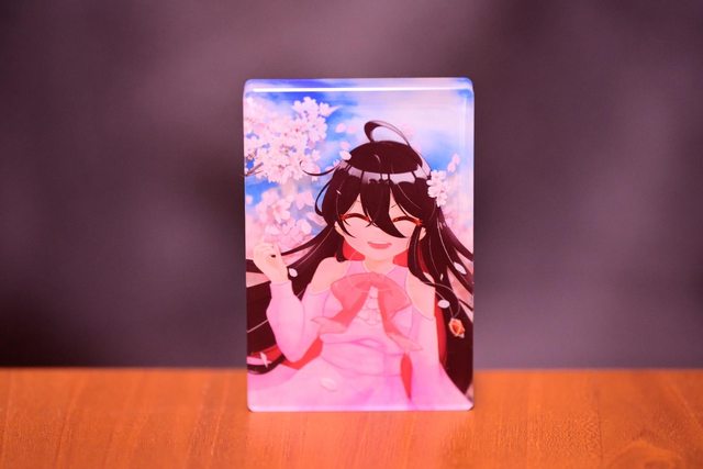 雙面的壓克力鑰匙圈,分別是黑髮、炎髮,