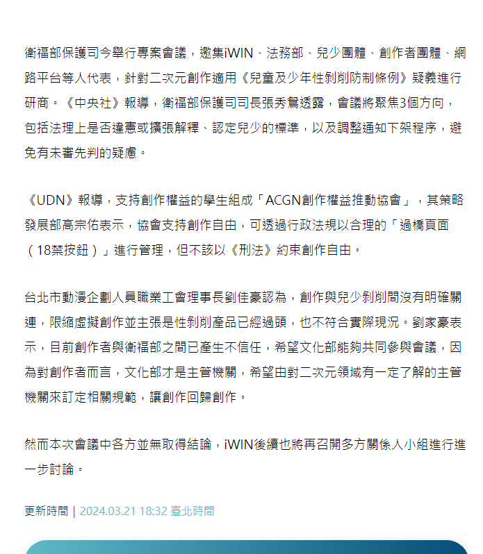 推 lslayer: 為福部說有共識就有共識 你反對是想被冠上兒少迫害標籤? 03/21 20:02