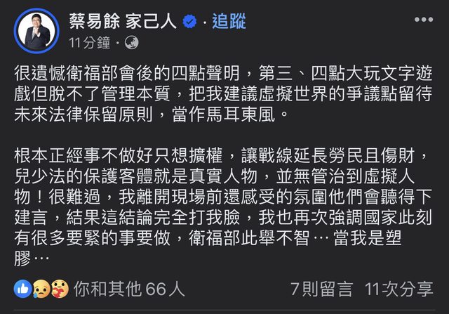 推 st101z: 光看之前的聲援以及這次聲明就可以得知,蔡委員真的很認真 03/21 21:02