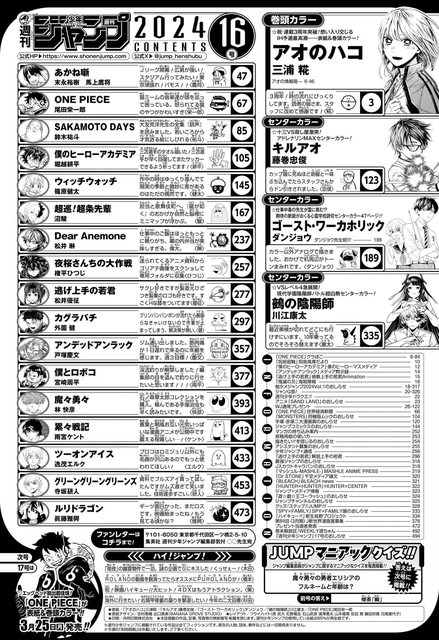 標題Re: [情報] 週刊少年JUMP 2024年16號順位(作者的話)