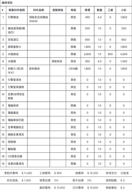 最近期大保養維修單: