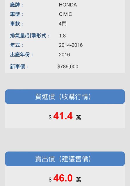 標題[購車] 二手 civic 9.5 中南部