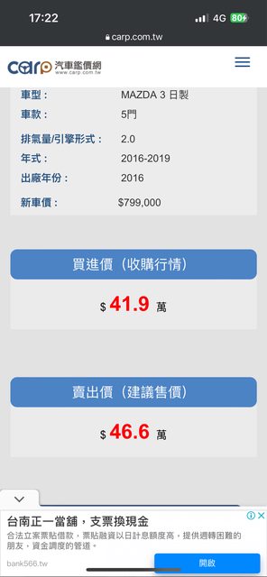 以下是mazda 3 2016年小改後的參考價格