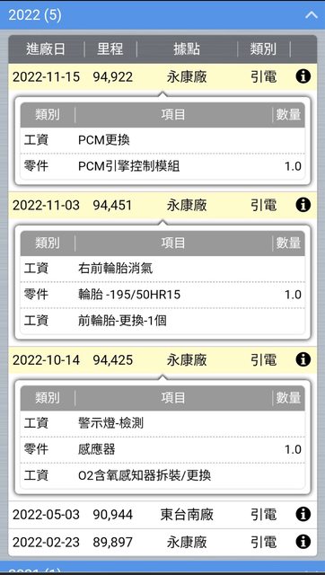 八萬五更新四條正新輪胎和正時皮帶,前避震二支在九萬四更換