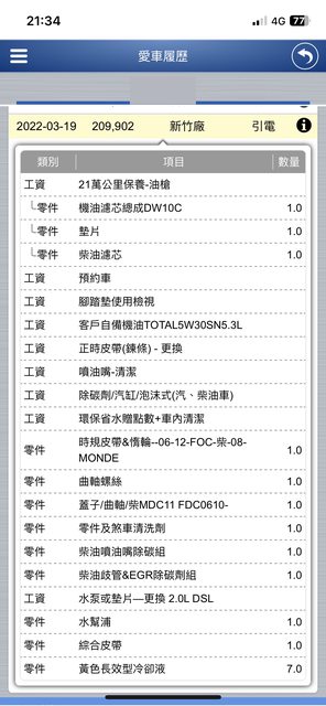 210000公里時已大保養並更換正時皮帶.