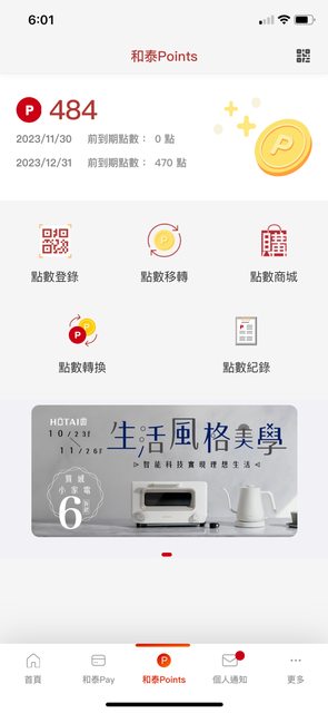 物品名稱:和泰點數484點