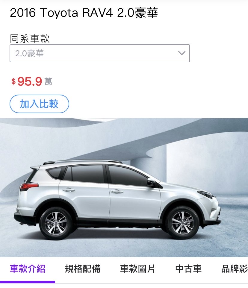 → aultra: RAV4豪華版是最低階 當時空車成交價大概8 61.228.214.182 11/06 14:54