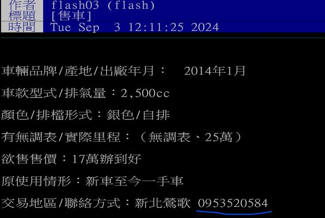 ※ 文章網址: https://www.ptt-site.org.tw/CarShop/M.1725423507.A.2A7