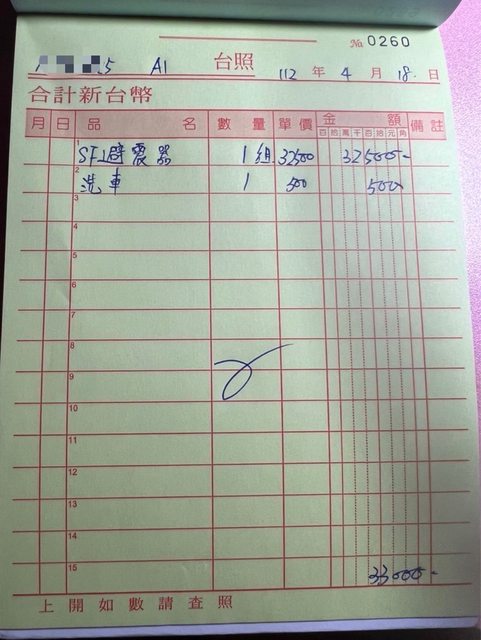 全車避震去年花三萬更換,變速箱已於今年2月大保養預防性換新,花費6萬元,變速箱保