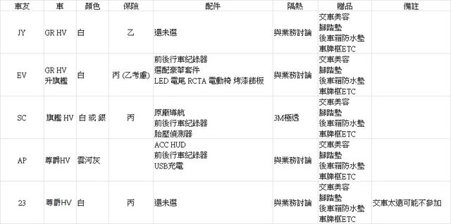 已經討論整合好要的車型保險配件