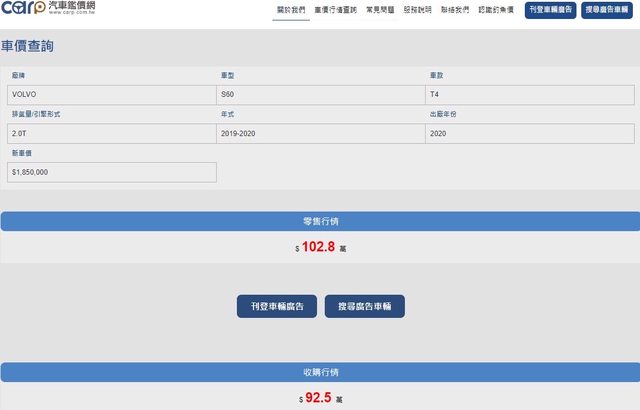 判斷進口車大約8年內都還行。只是乙式車險必須買好買滿,萬一碰撞VOLVO的零件很貴,