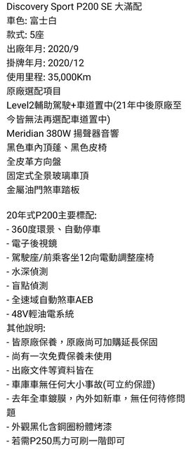 車輛品牌/產地/出廠年月:Land Rover 英國 2020年9月(12月領牌)