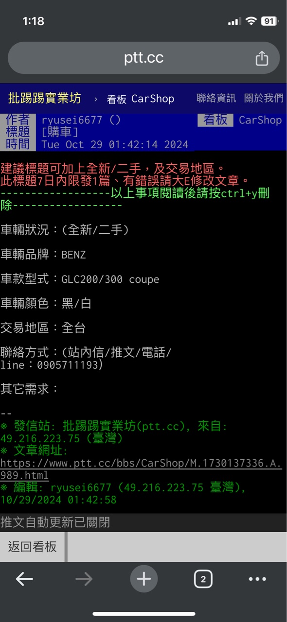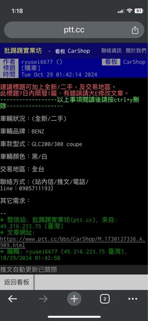 ※ 文章網址: https://www.ptt-site.org.tw/CarShop/M.1731652885.A.B30