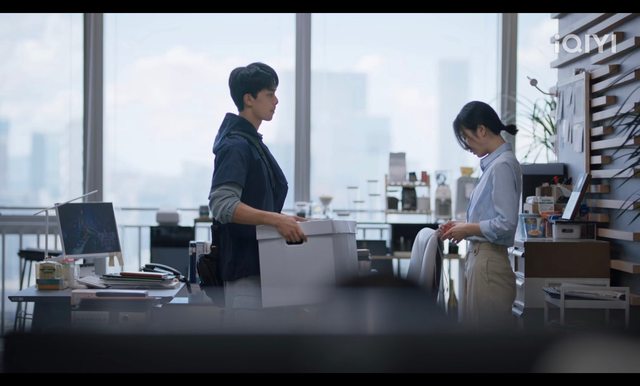 女主被公司開除時,最低潮落魄的時刻陪著她,陪她一起收拾東西,並貼心地幫她拿重物
