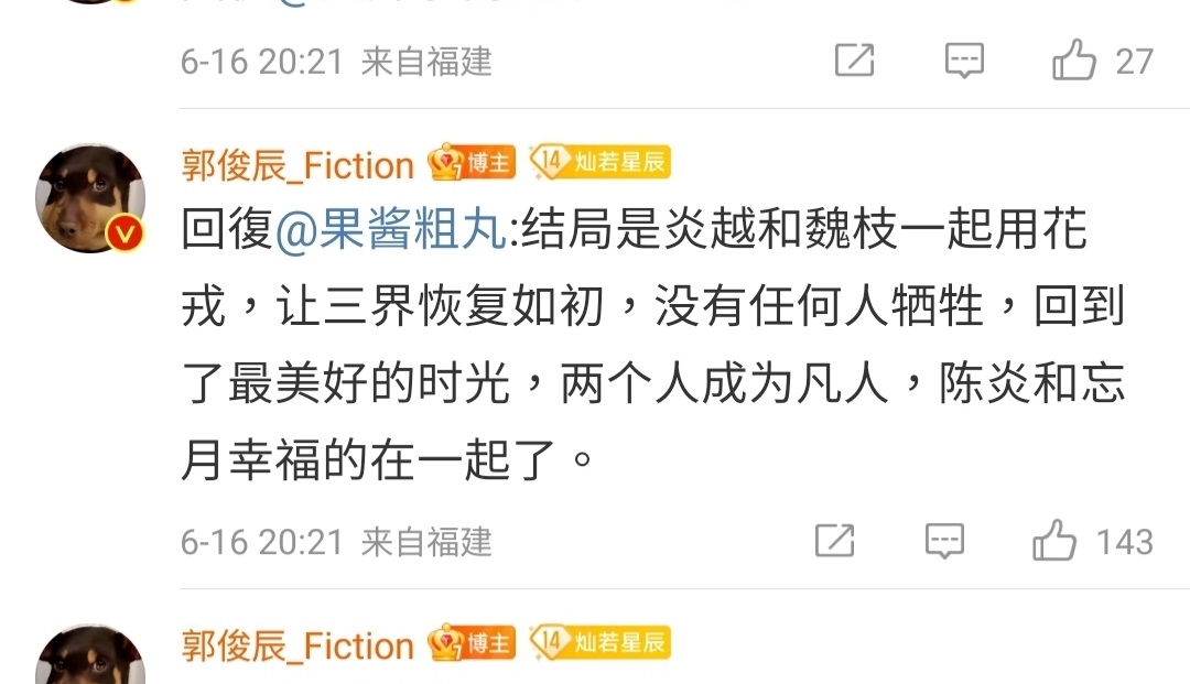 → millymilly66: 覺得陳炎那一世拍得滿好的,男女主的演技也不錯~ 06/16 21:38