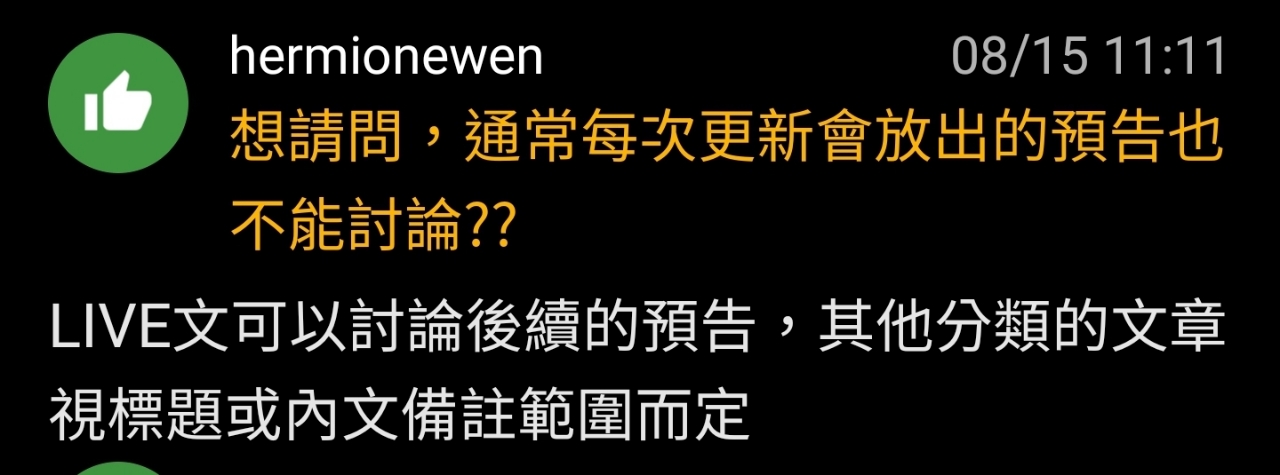 → evitalee6937: 是在提醒我去買超點嗎?= = 07/15 18:31