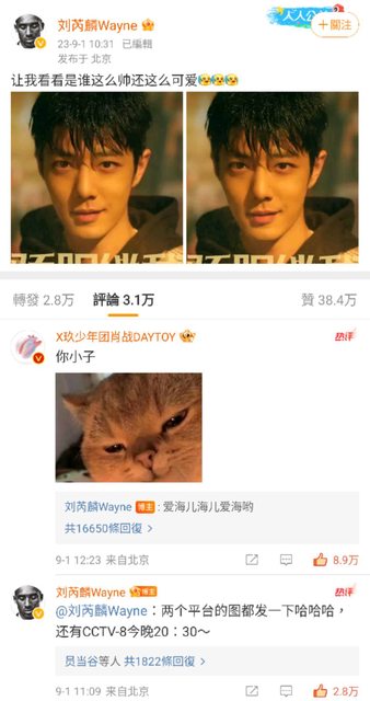 推 katehsu26262: 謝謝肖媽媽生了肖戰,整個中國的平均顏值都提高了 09/02 00:01