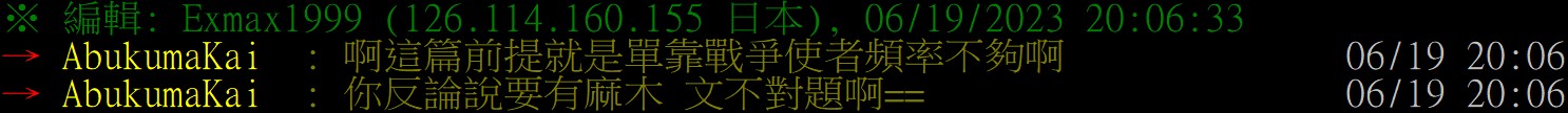 → Exmax1999 : 你既然一開始就說不過我那一開始就不要回就好了 06/19 21:14
