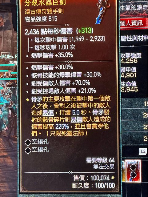 推 sai0224sai : 我沒玩死靈 但這815又雙爆傷 洗個易傷出來就很強了 06/20 05:57
