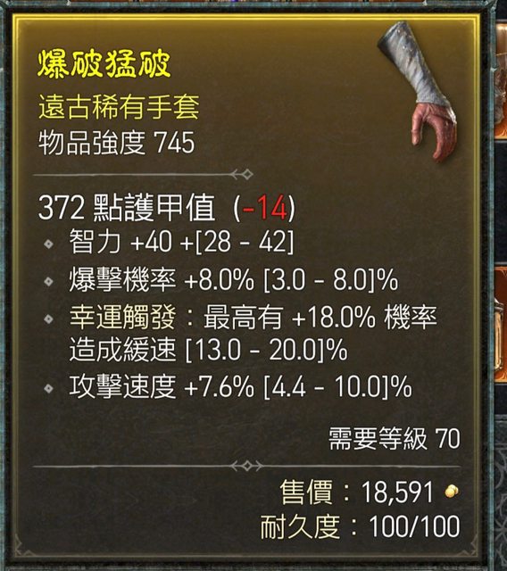 標題[交易] D4 70等法師主屬/攻速/爆率手套