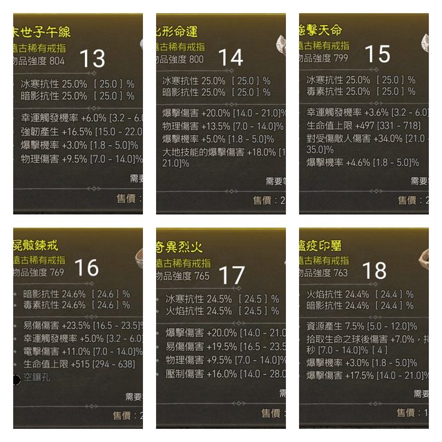13.幸運 強韌 爆擊 物傷(戒指) 等需100