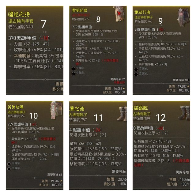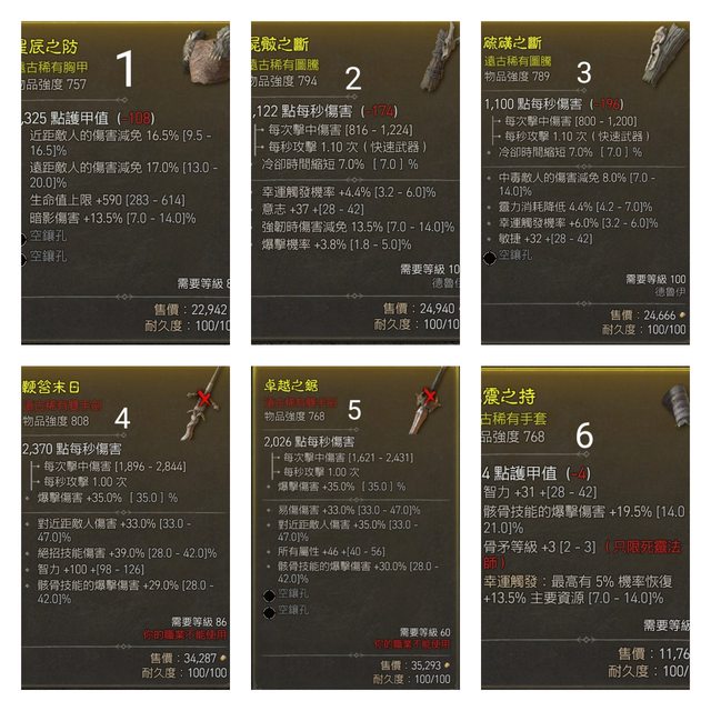 6.智力 骸骨爆傷 骨矛3 幸運回能(手套) 等需89