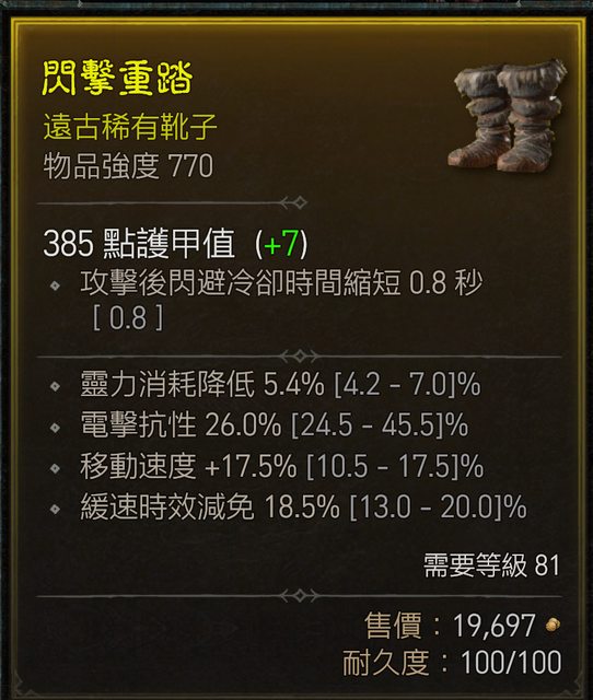 (7) 不知道緩速減免有沒有用但是有減耗和頂移速還有攻擊降冷卻的垃圾鞋子