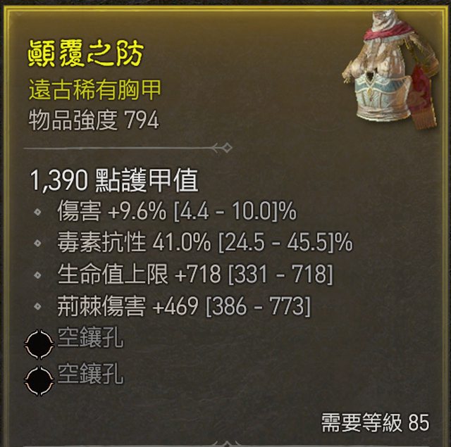 標題[交易] D4 近頂傷害+近頂毒抗+頂生命 85級胸甲