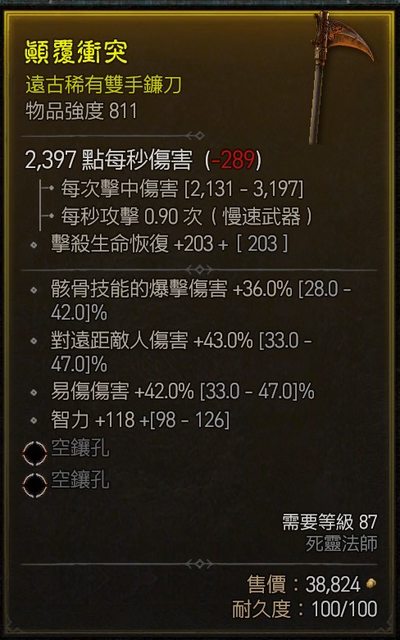 標題[競標] 骨靈雙手鐮 811/骸骨爆/易傷/智力