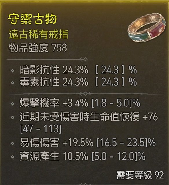 2. [500萬] 758戒指 爆率/易傷/資源產生 LV92