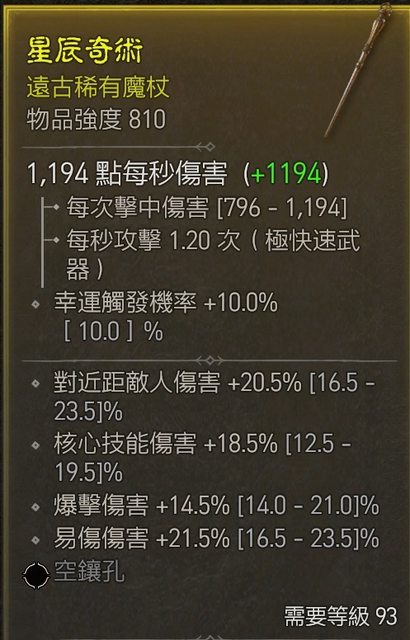 1. [售出] [500萬] 810單手魔杖 爆傷/易傷/核心 LV93