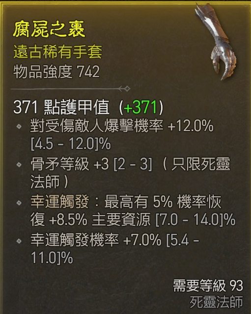 4. [500萬] 742手套 骨矛/幸運/幸運回資源 LV93