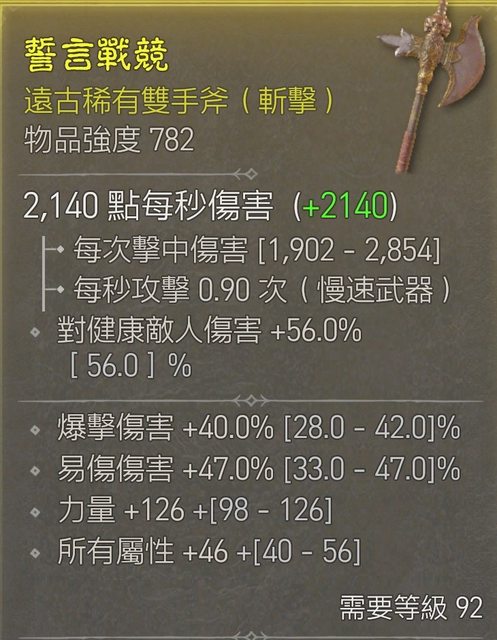 4號 雙手斧 500萬 屬性全中 力量 易傷頂