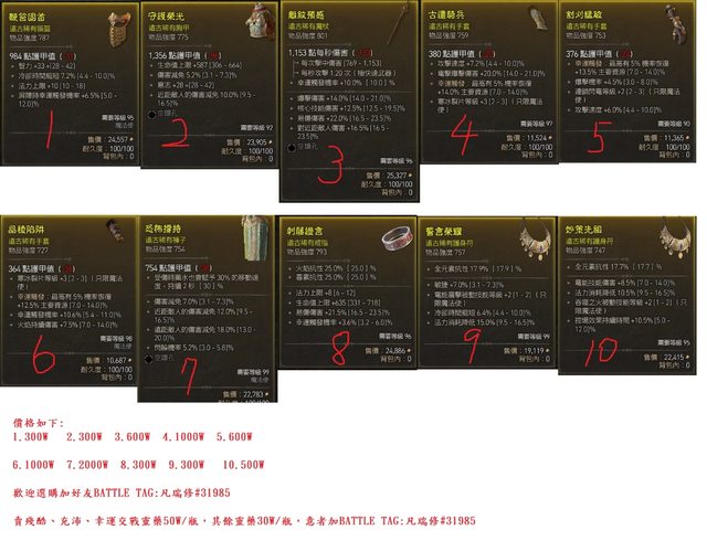 大家午安,小弟來賣一些裝備,如下述: