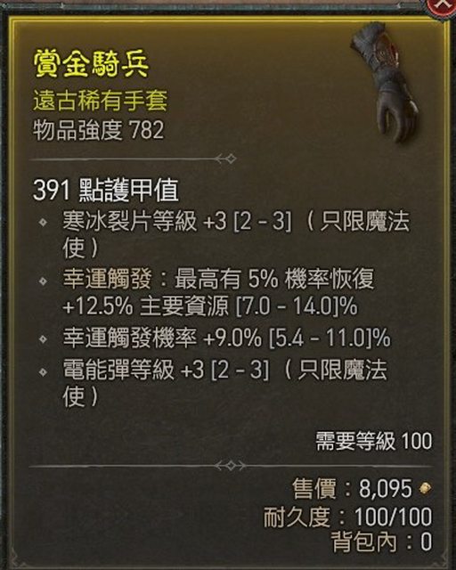 物 品:如圖 法師裂片+3、幸運、幸運回魔;第四是電能彈+3