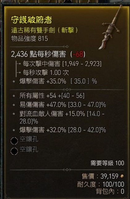 標題[競標] D4 815強度頂易傷雙手劍(100等)