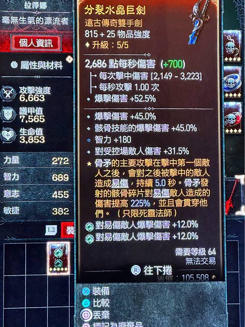 → Sirctal : 所以理想上的完美詞綴應該是 智力 易傷 爆傷 骸骨爆 07/12 08:21