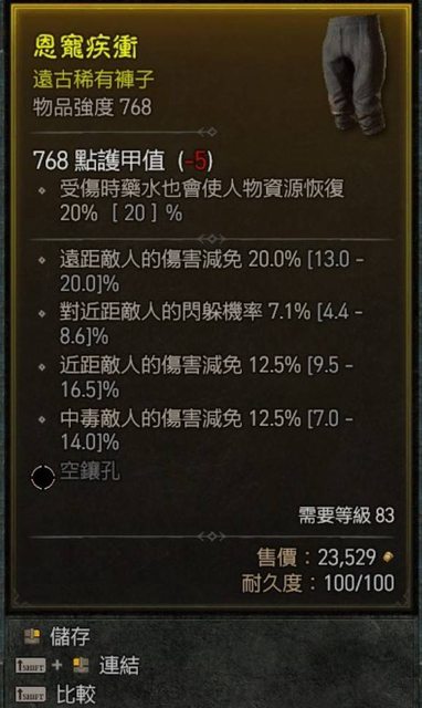 標題[競標] D4 遠近毒3減傷 1閃避 褲子