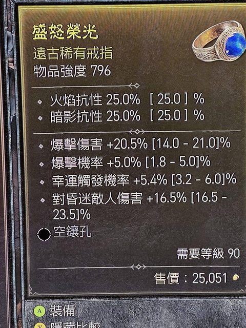 標題[競標] D4 90等 頂爆率,近頂爆傷/幸運戒指