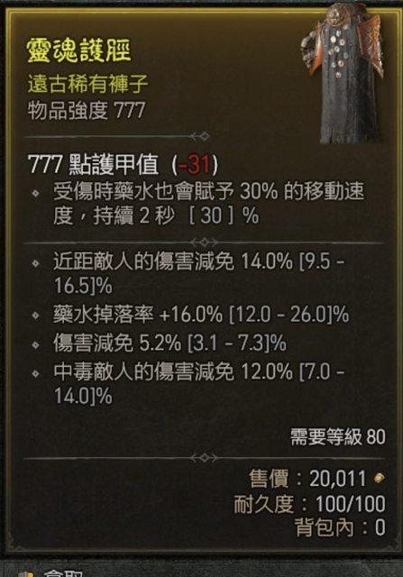 物 品:777三減傷褲子(80級)