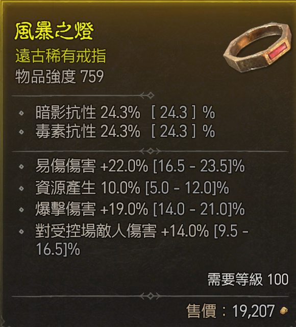 標題[競標] D4 100級 近頂易傷 近頂爆傷 資源 戒指