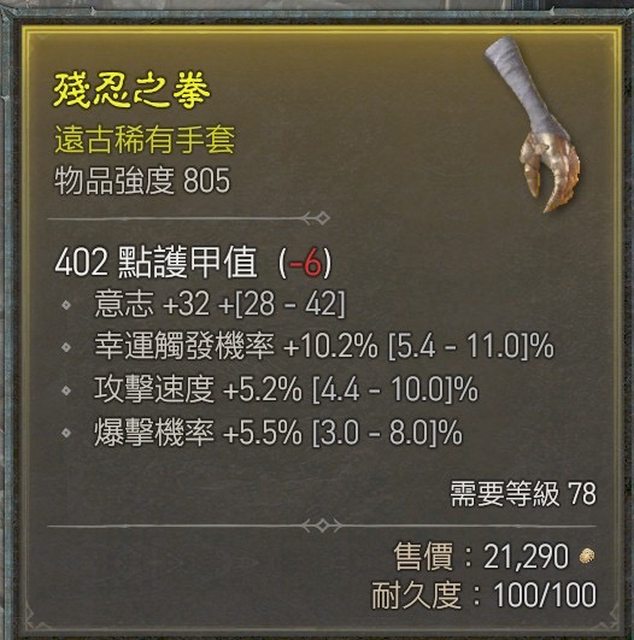 標題[競標] D4賽季 幸運/攻速/爆擊手套