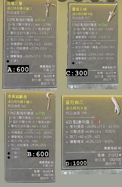 例如: [交易] D4 賣死靈雙手劍